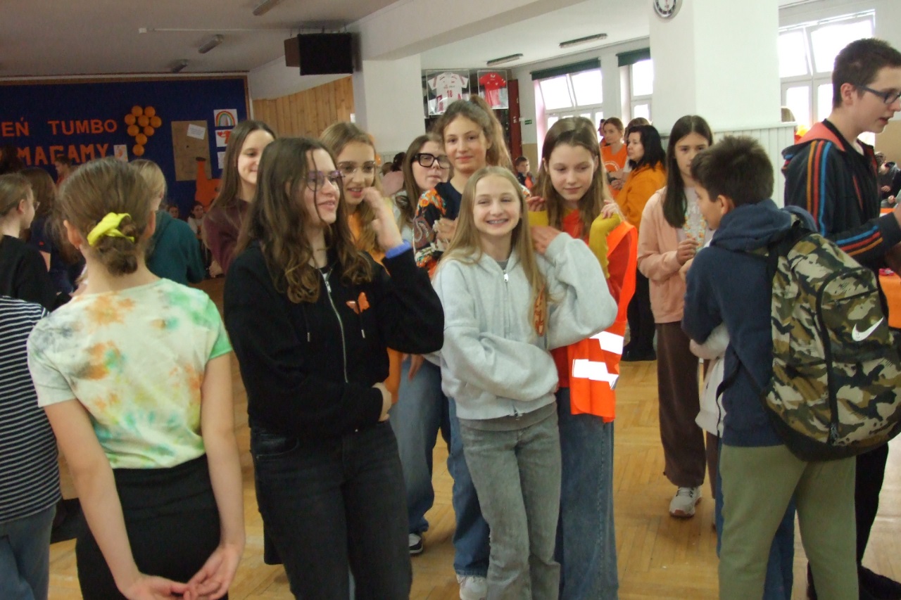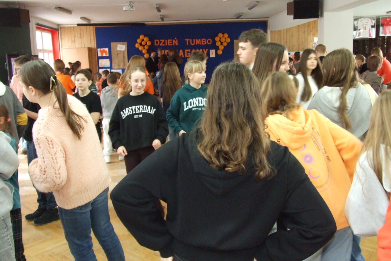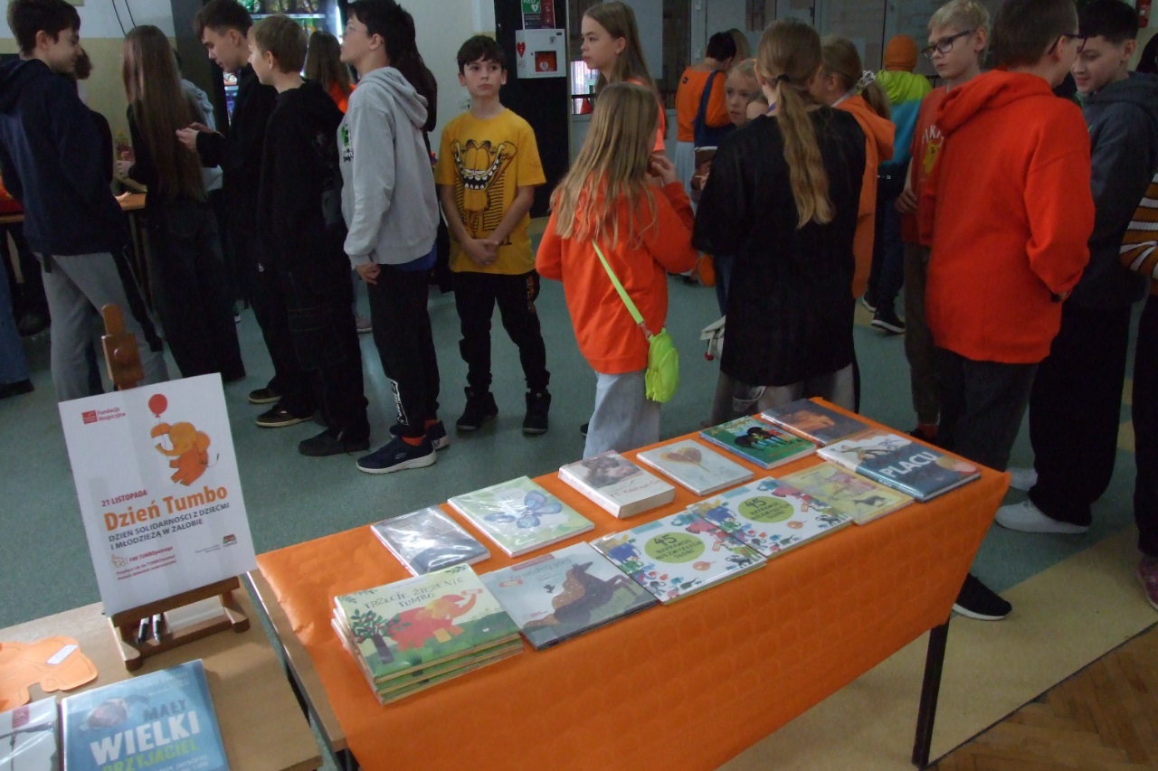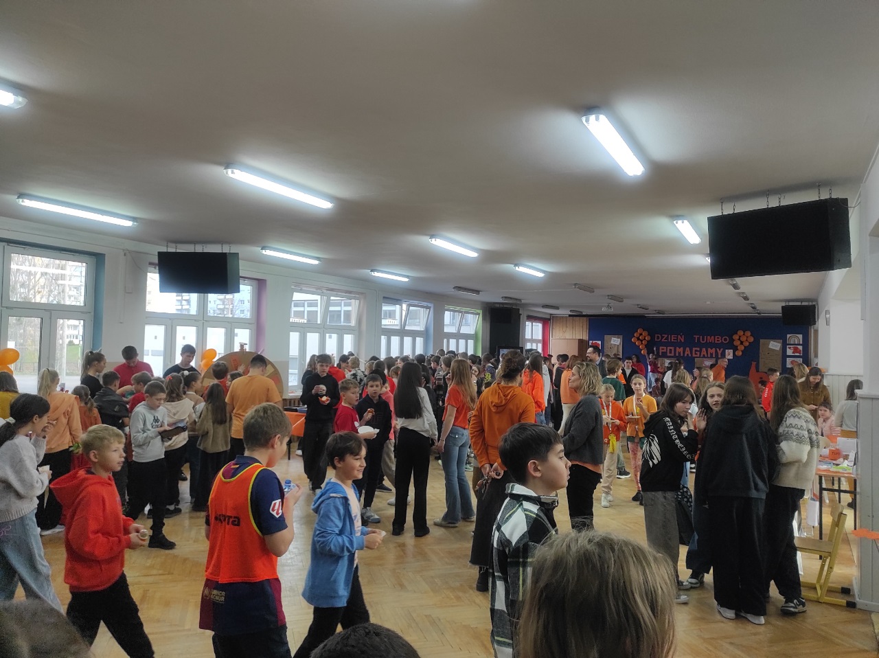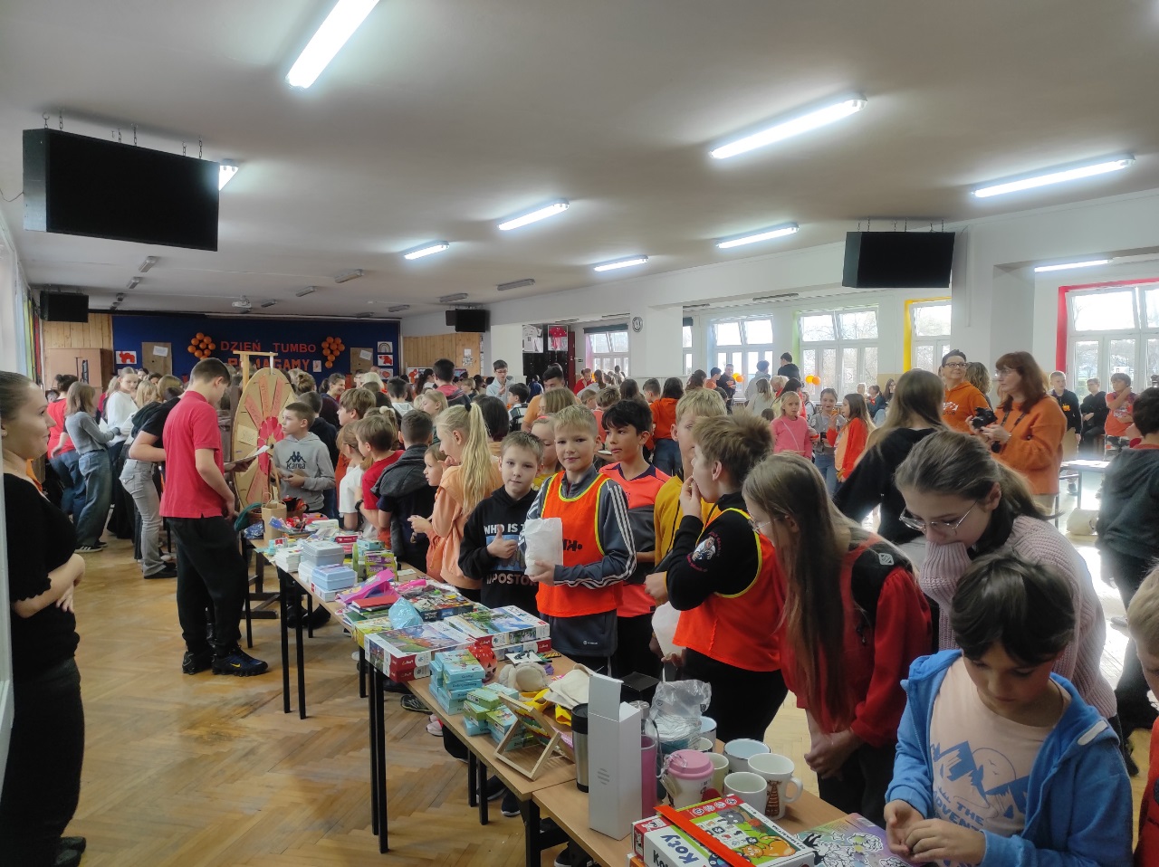 W dniu 21 listopada 2025 r. w naszej szkole obchodziliśmy Dzień Tumbo - Dzień Solidarności z Dziećmi i Młodzieżą po Stracie Bliskiej Osoby. W tygodniu poprzedzającym wydarzenie nauczyciele poruszali na lekcjach temat emocji oraz sposobów wsparcia dla uczniów przeżywających żałobę i stratę. W ramach obchodów przygotowaliśmy kiermasz ciast, wystawę wykonanych plakatów przez uczniów, koło fortuny, you can dance oraz kąciki: kreatywny, czytelniczy i retro gier. Wszystkie aktywności miały na celu nie tylko integrację, lecz także pokazanie, jak ważne są empatia i wzajemne wsparcie.
