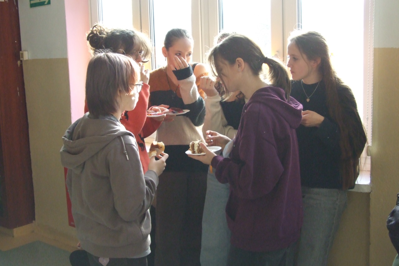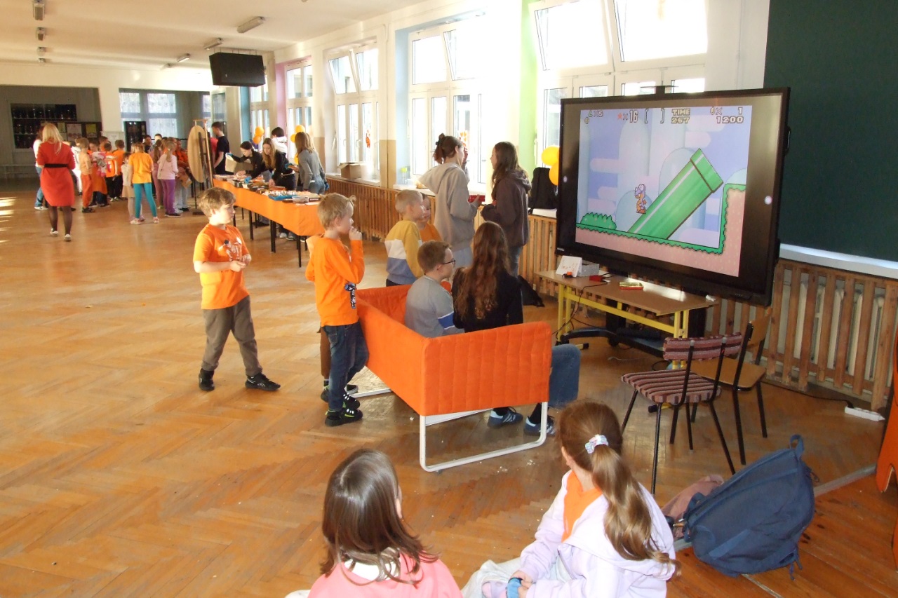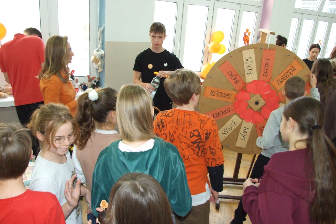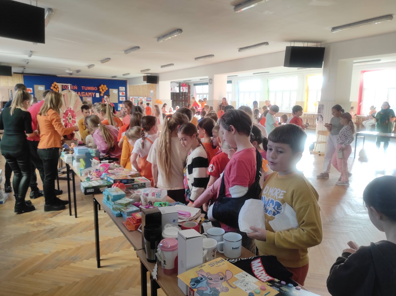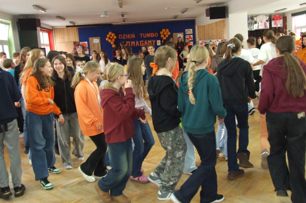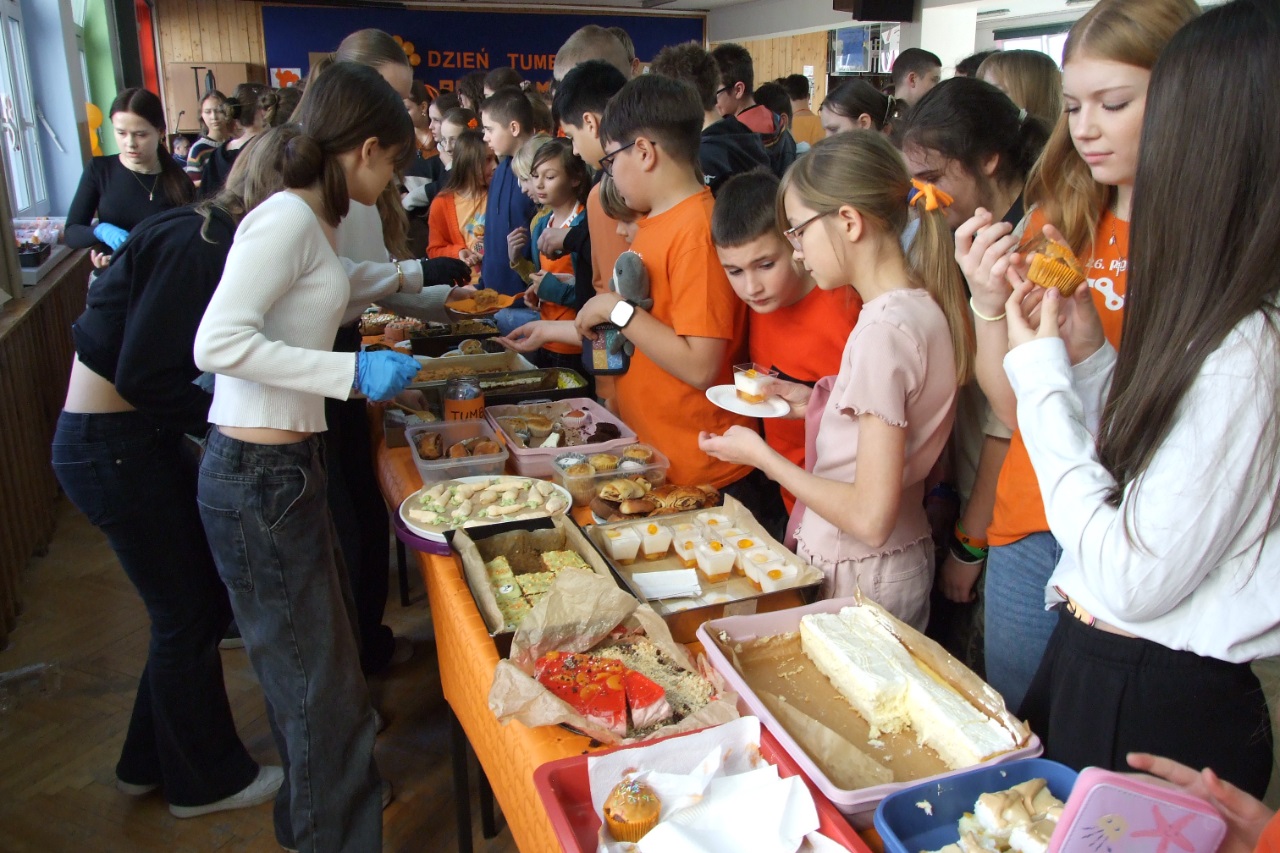 W dniu 21 listopada 2025 r. w naszej szkole obchodziliśmy Dzień Tumbo - Dzień Solidarności z Dziećmi i Młodzieżą po Stracie Bliskiej Osoby. W tygodniu poprzedzającym wydarzenie nauczyciele poruszali na lekcjach temat emocji oraz sposobów wsparcia dla uczniów przeżywających żałobę i stratę. W ramach obchodów przygotowaliśmy kiermasz ciast, wystawę wykonanych plakatów przez uczniów, koło fortuny, you can dance oraz kąciki: kreatywny, czytelniczy i retro gier. Wszystkie aktywności miały na celu nie tylko integrację, lecz także pokazanie, jak ważne są empatia i wzajemne wsparcie.
