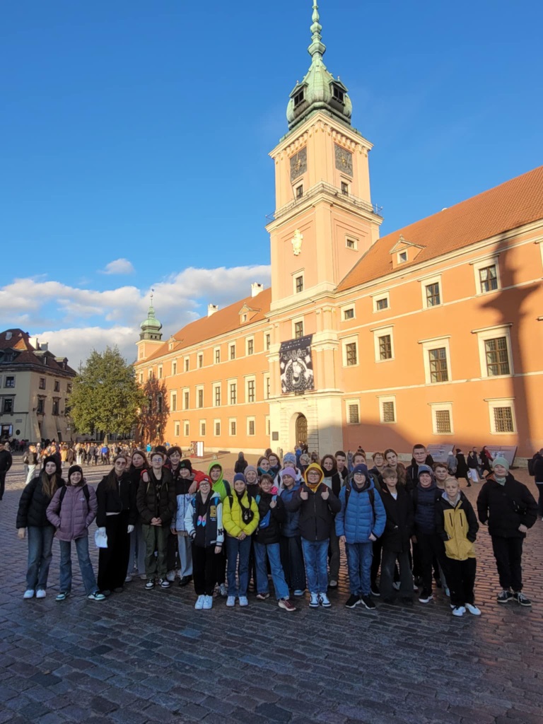 W październiku uczniowie Szkolnego Koła historycznego wybrali się na wycieczkę do Warszawy, aby lepiej poznać dzieje Polski. Pierwszym punktem programu było Muzeum Historii Polski i wystawa " Rzeczpospolita Powstańcza. Insurekcja kościuszkowska i jej tradycje". Następnie grupa udała się na zwiedzanie Cytadeli Warszawskiej i Pawilonu X, gdzie przewodnik opowiadał o losach więźniów politycznych. Po południu odwiedzili także Zamek Królewski podziwiając bogato zdobione komnaty oraz słynne dzieła sztuki. Wycieczka zakończyła się wspólnym zdjęciem i poczuciem, że historia może być fascynującą przygodą.